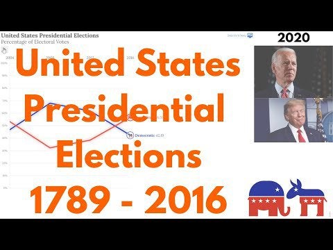 Infographic : In this video you can see the percentage of the electoral votes received by the two main candidates (marked with the name and color of their parties) of the US elections since 1789.