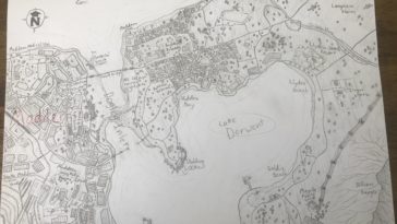 in Map Map : Crude town map drawn in spare time. Ignore the references- most of the names came from stuff on my desk. Scale is a bit off but think it looks alright from a distance