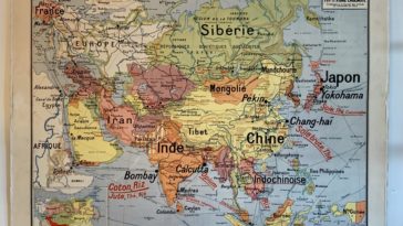 in Map Map : French map of Asia with trade routes for opium, spices, gold — currently in my dining room
