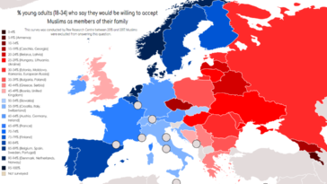 in Map Map : % of young adults (18-34) who say they would be willing to accept Muslims as members of their family