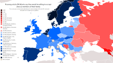in Map Map : % young adults (18-34) who say they would be willing to accept Jews as members of their family