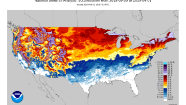 in Map Map : Total snowfall accumulation in contiguous United States from September 30 2018 to April 1 2019