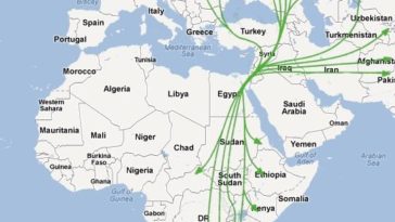 in Map Map : the world’s most important bird migration corridors, The Great Rift Valley flyway links Europe, Asia, and Africa for birds migrating between breeding and wintering grounds.