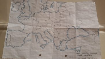 in Map Map : I got bored in school today so I drew the map of Europe completely from memory today, but being 13, this will probably get me teased until the rest of school [OC]