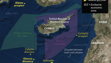 in Map Map : A Map of Recent Natural Gas Discoveries Around Cyprus and Maritime Disputes in the Eastern Mediterranean Sea