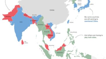 in Map Map : Countries and their changing relationships with the USAand China. Blue means closer to the USA, red means closer to China and green means attempting to please both sides