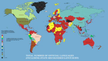 in Map Map : Number of official languages in each country (including the languages that are official in some states of a country)