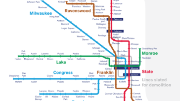 in Map Map : In 1976, Chicago planned to demolish the Loop, the iconic elevated railway structure that circles its downtown. I drew a map of the plan.