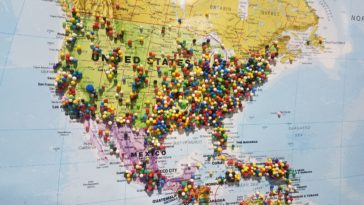 in Map Map : Maps in the USO in Kuwait where Service Members can show where they’re from with push pins.