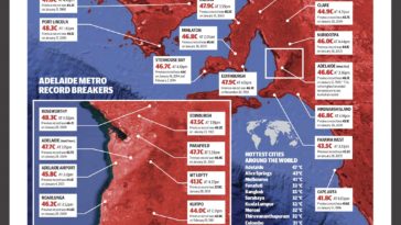 in Map Map : Temperature records broken in the state of South Australia on the 24th of January 2019. From the local newpaper “The Advertiser”.