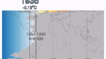 in Map Map : Global temperature at different latitudes since 1935 – showing the yearly average compared to 1961-1990 average
