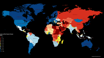 in Map Map : A map to show the score of countries on the Freedom House Index (measuring political rights and civil liberties)