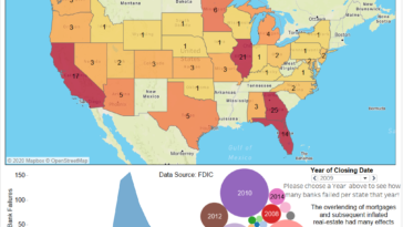 in Map Map : Here is a map of the United States, with each state showing the number of Failed Banks since 2000.