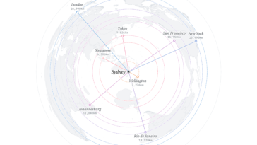 in Map Map : A map showing relative distances of various cities from Sydney 🇦🇺using the Azimuthal Equidistant projection