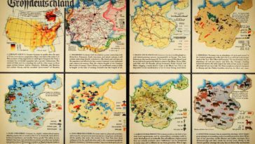 in Map Map : “Grossdeutschland” (Greater Germany), 1939 infographics by Richard Edes Harrison in Fortune Magazine [1,500 x 935].