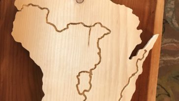 in Map Map : My wife made a map of Wisconsin and the Ice Age Trail today, first time using a scroll saw!