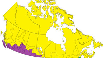 in Map Map : Each coloured area is approximately a quarter of Canada’s population. (Source and other maps in comments)