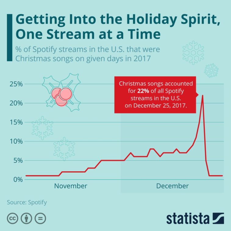 Infographic : Christmas songs account for more than a fifth of all Spotify Steams in the US on Christmas day