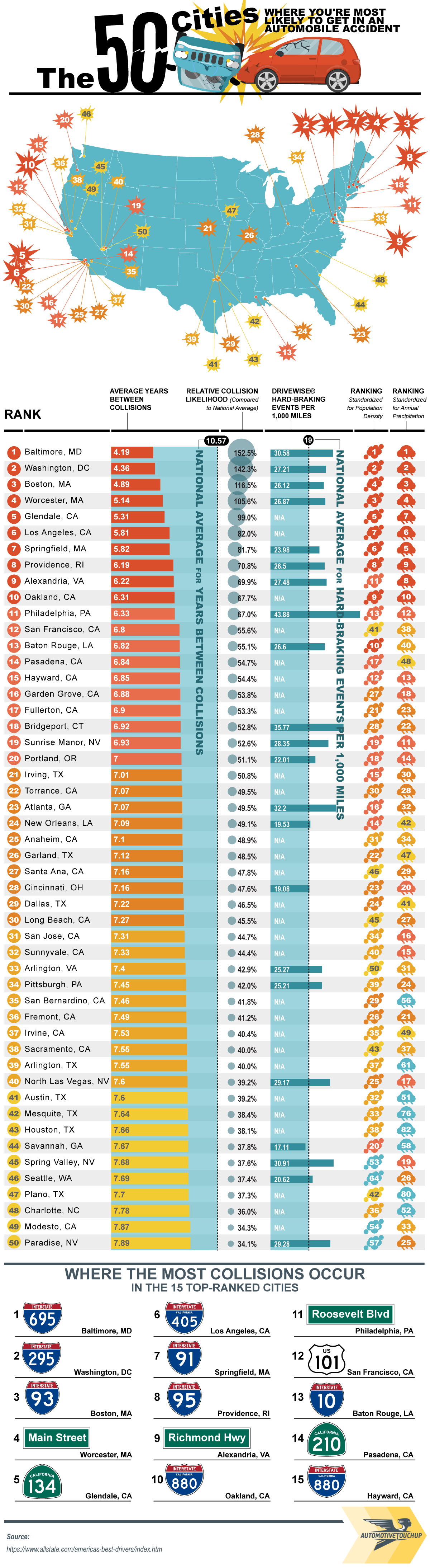 Infographic : Cities Most Likely To Get in Auto Accident