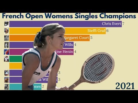 French Open Womens Singles Champions from 1925 to 2021. The record for most titles is held by Chris Evert with seven.