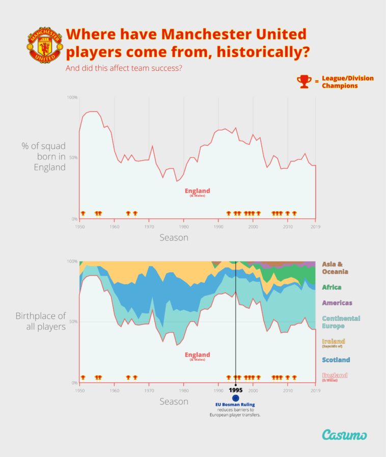 Infographic : Here’s how the nationality of six English football clubs has changed over 70 years (1950 to 2019) [hi-rez versions linked in comments] [x-post /r/DataArt]