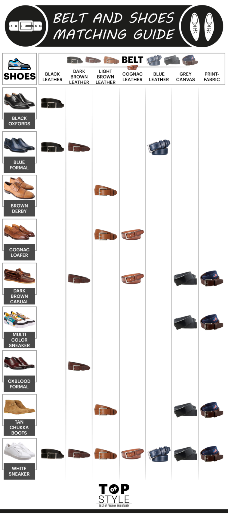 Chart : How to Match Your Belt with Shoes? A Visual Guide