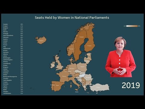 In this video you can see how many seats held by women in national parliaments from 2003 to 2019 in Europe.