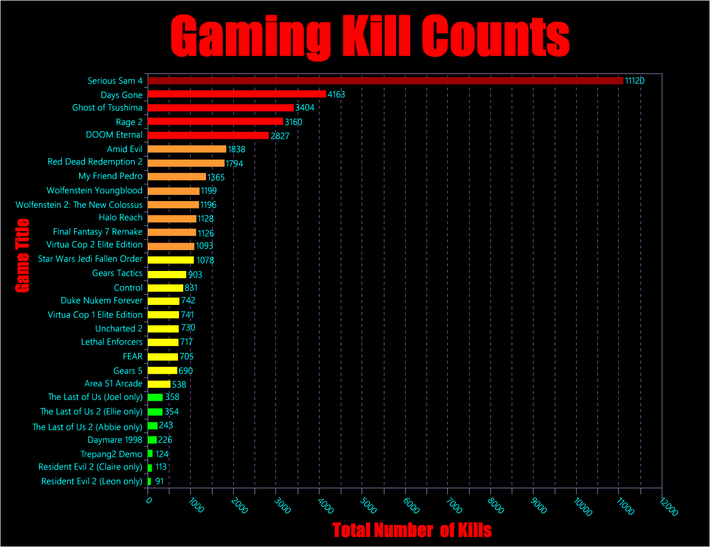 Infographic : Manually counted all the kills for every game I played in 2019 and 2020 (so far).