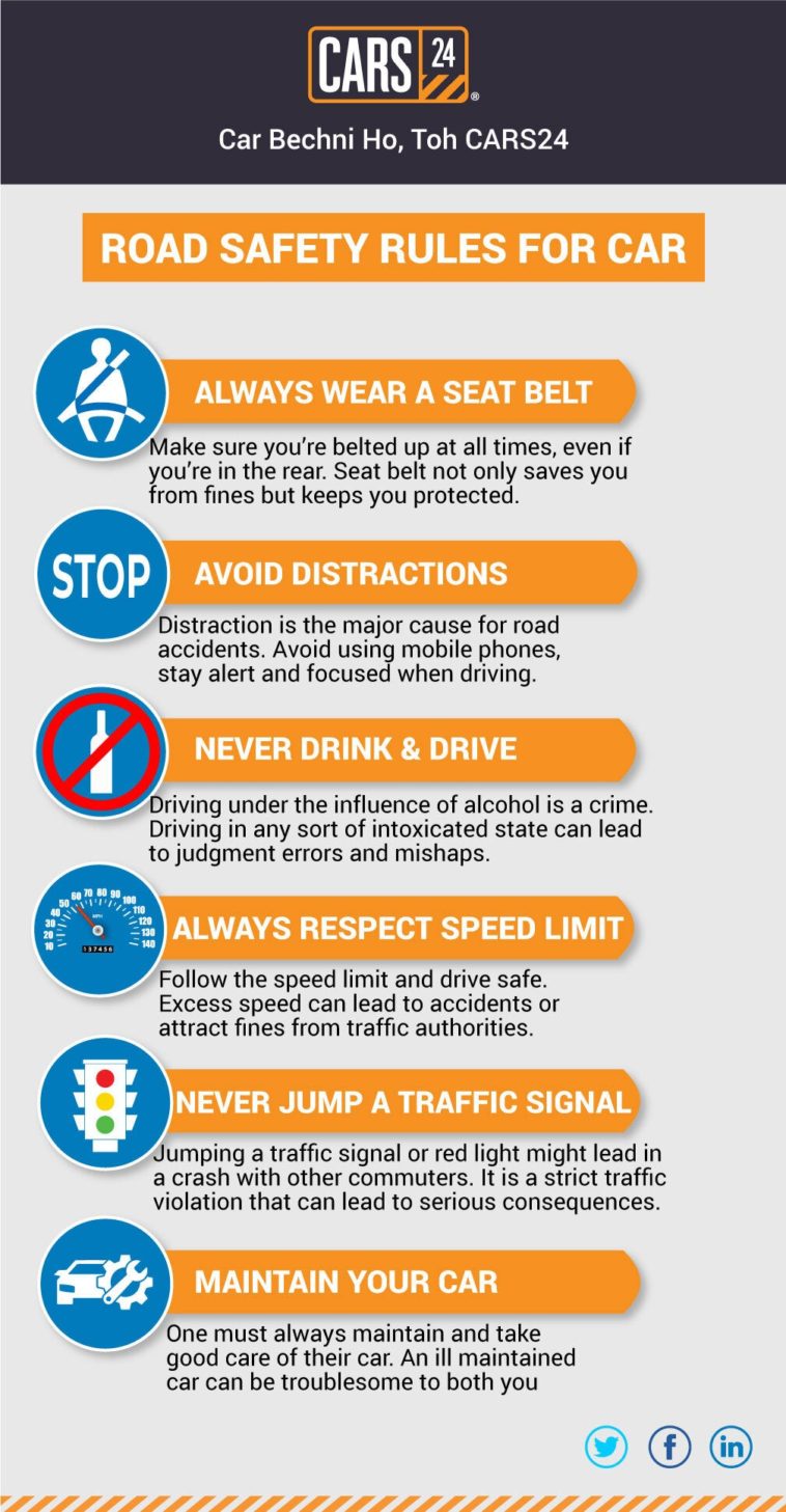 Infographic : Road Safety Rules for Car in India – Road Safety Tips for Car
