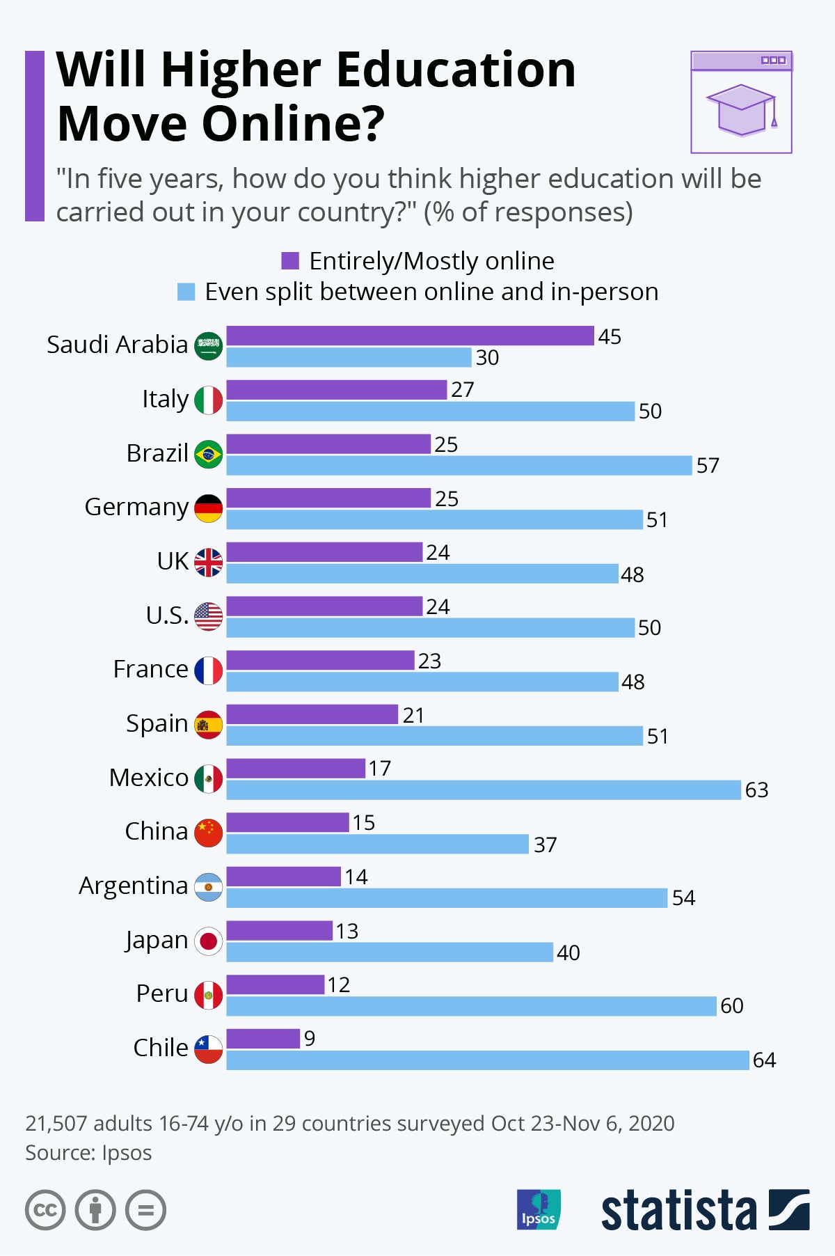 Infographic : Roughly half of Saudi Arabians expect their country to conduct most of its higher ed online in 2025