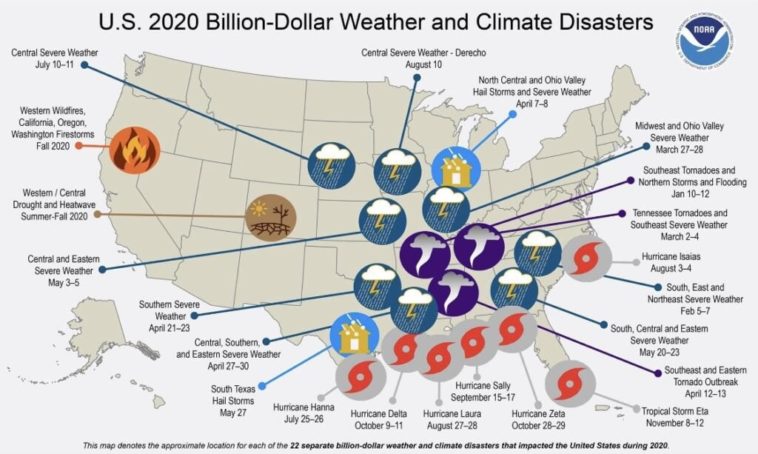 Infographic : U.S. 2020 Billion-Dollar Weather and Climate Disasters