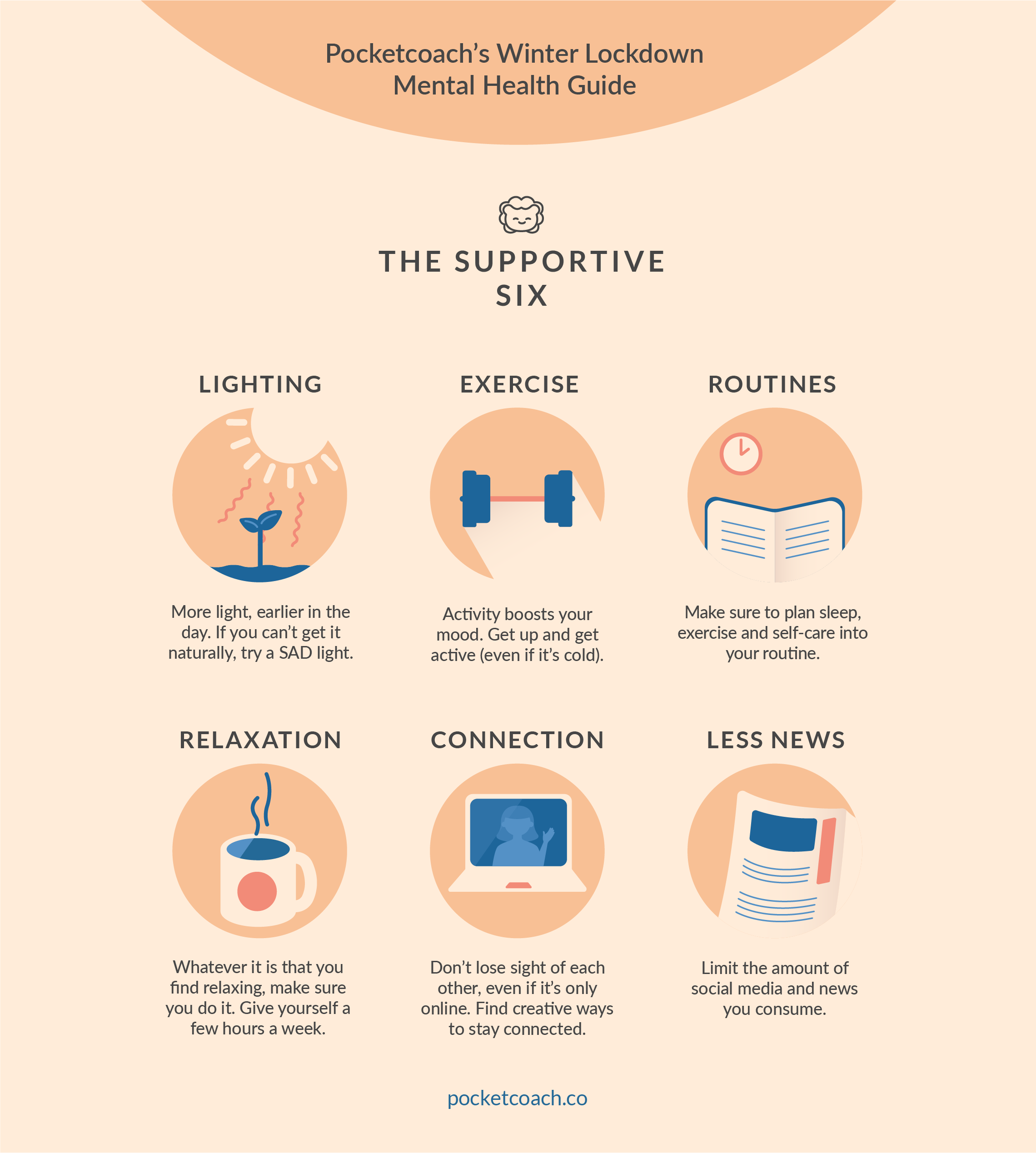 Infographic : Winter Lockdown Mental Health Guide: The Supportive Six by Pocketcoach