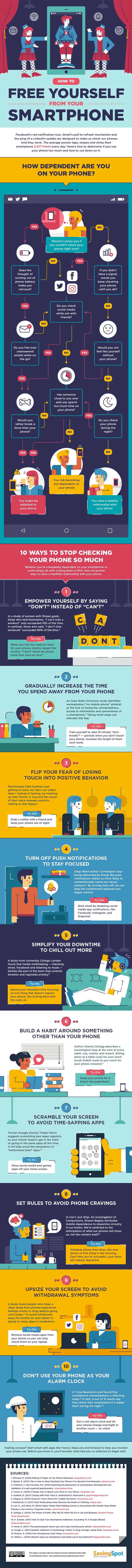 infographic describes tips to avoid cellphone overuse and to stop checking your phone so much
