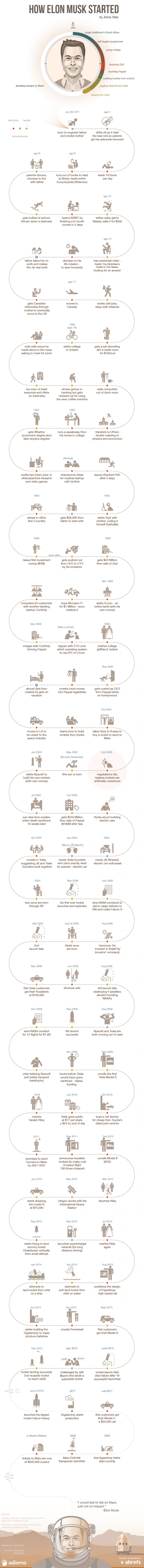 in Infographics Data Chart : A Timeline Of Elon Musk’s Race To Greatness [Infographic February 11, 2019, 7:40 pm 21.8k Views 0 Comments Data Chart : A Timeline Of Elon Musk’s Race To Greatness [Infographic Infographic showing Elon Musk`s life from his birth to where he is today. Sharing is caring, don’t forget to share this infographic ! 0 shares What do you think? 459 Points Upvote Downvote Leave a Reply Cancel replyYour email address will not be published. Required fields are marked *Comment * Name * Email * Website Next post