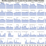 data visualization : Monthly popularity for top artists on Radio Paradise (2007 – 2018) [OC]