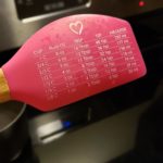 Visual : The mixing spatula my girlfriend got me has a quick conversion chart for cooking measurements.
