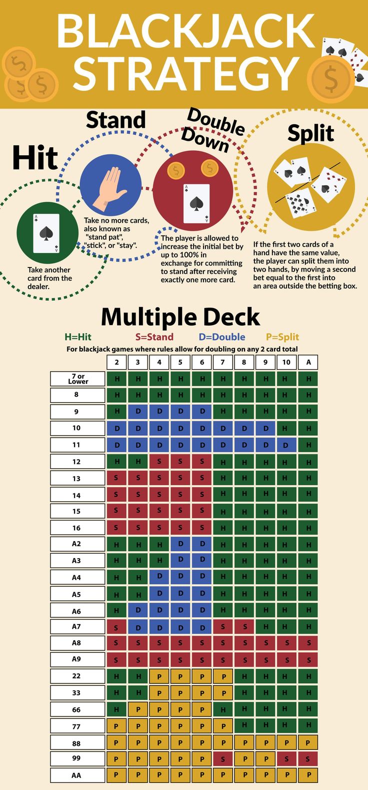 Today’s graphic covers the basics of blackjack, but also the not-so-common ‘split’ where a player can split their hand into two. #infographic #blackjackstrategy