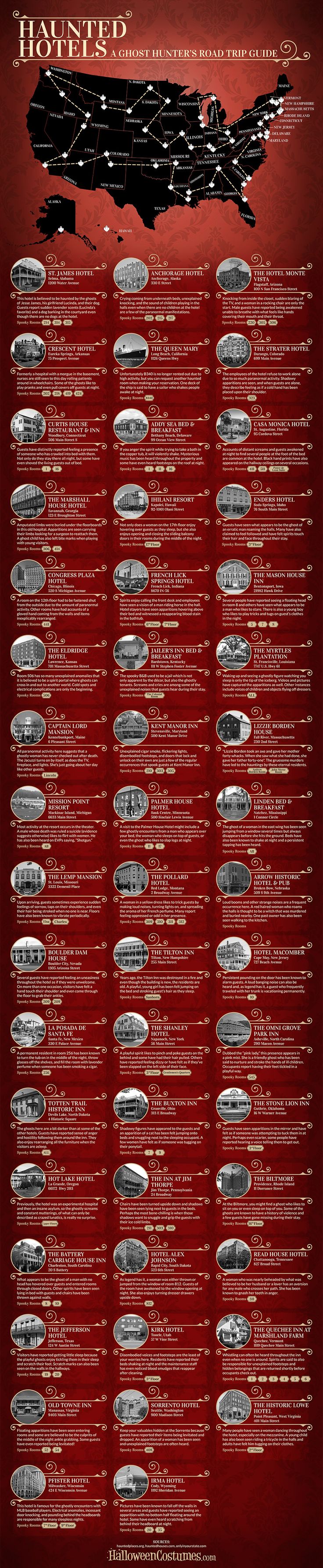Data Chart : Haunted: The Spookiest Hotels In America [Infographic