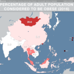 Map : Percentage of adult population considered to be obese in Asia [OC] [3534×3401]