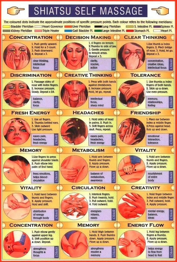 in Infographics Data Chart : Shiatsu Self Massage: No Appointment Necessary! [Infographic December 26, 2018, 5:21 am 14.9k Views 0 Comments Data Chart : Shiatsu Self Massage: No Appointment Necessary! [Infographic Shiatsu Self Massage chart shows you how to massage yourself–no appointment necessary! Sharing is caring, don’t forget to share this infographic ! 0 shares What do you think? 459 Points Upvote Downvote Leave a Reply Cancel replyYour email address will not be published. Required fields are marked *Comment * Name * Email * Website Next post