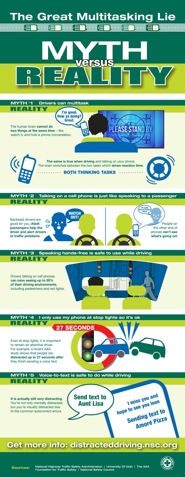 Although you may think that you can talk on your phone while driving, it's a myth. Here are the realities of using your phone while driving.