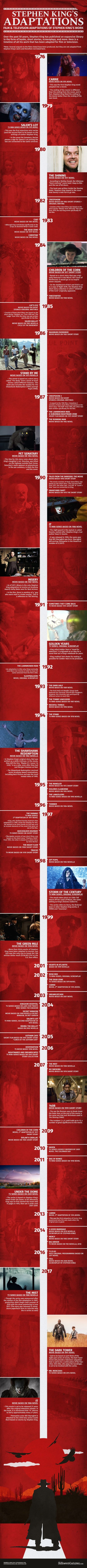 All of the shows and movies that have ever been adapted from Stephen King’s works are on the timeline of this infographic. #infographic #horrorfilms