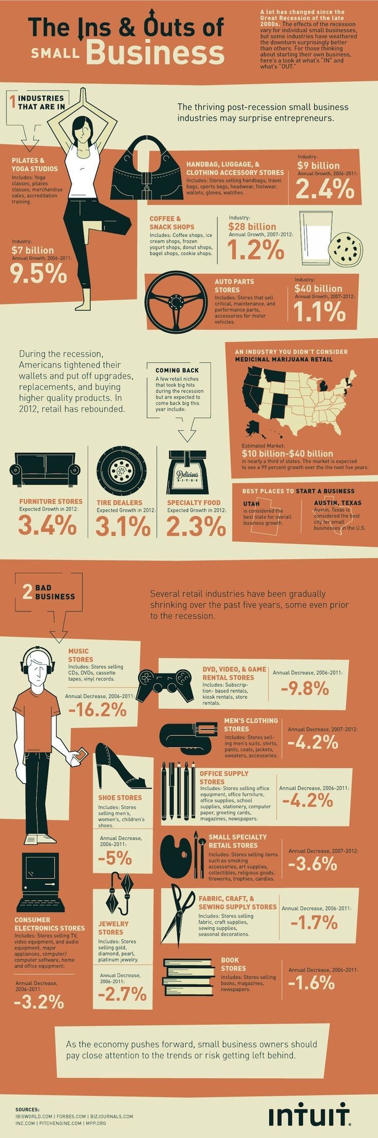 Data Chart : WHAT ARE THE BEST SMALL BUSINESS INDUSTRIES? —> Working out and staying healthy has become a new routine for some. Instead of spending their hard earned cash eating out, they’ve been hitting the Yoga and Pilates studios instead. People may be thrifty when it comes to buying whole outfits, but they’re making it up in the accessory department; and while people may not be splurging on two Starbucks trips a day. #business #infographic