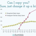 data visualization : Instagram vs. Snapchat stories (daily users). [OC]