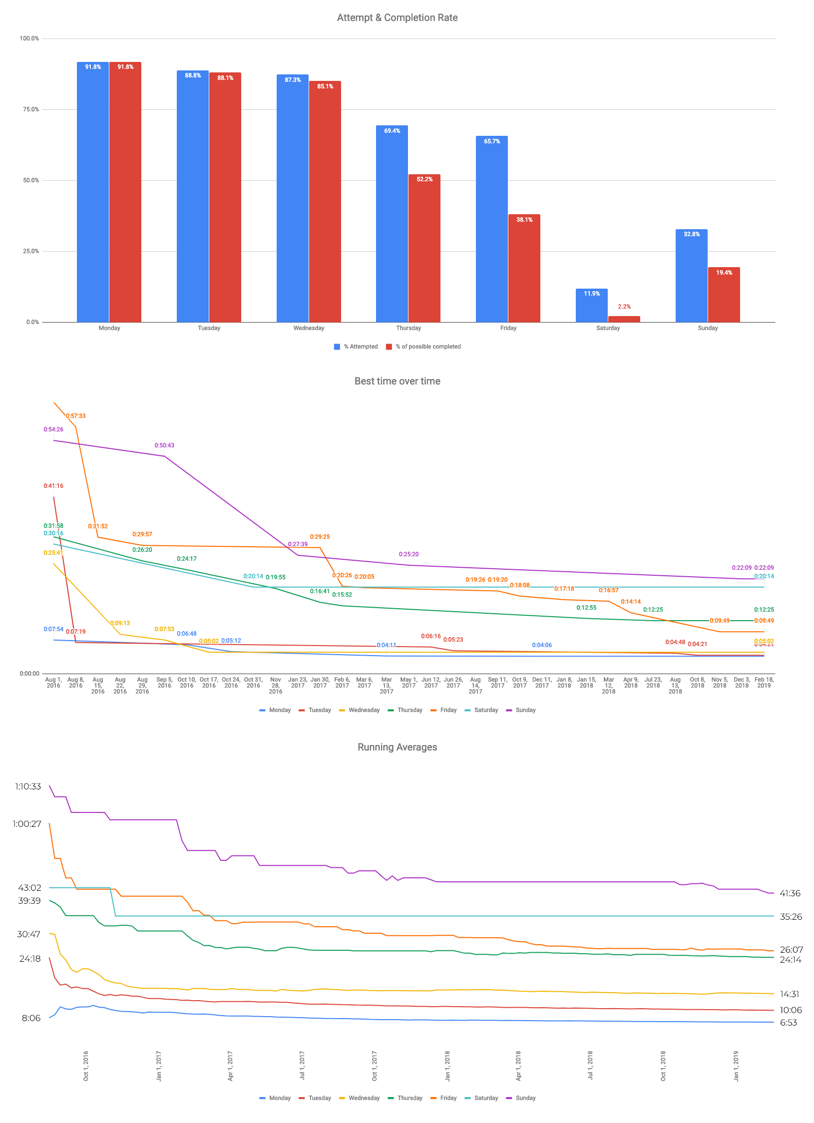 Data visualization : 2.5 years of my own solved NYT crossword data [OC]