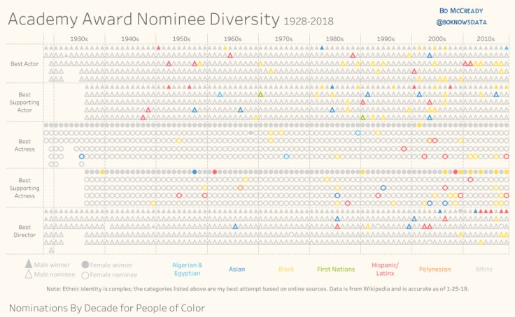 Data visualization : Academy Award Nominee and Winner Diversity 1928-2018 [OC]