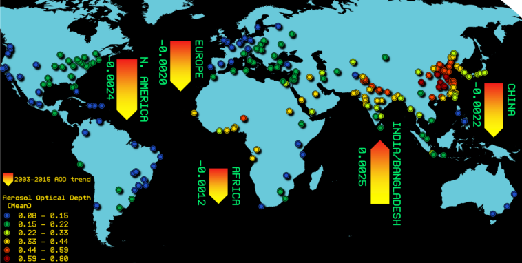 Data visualization : Aerosol Optical Depth + Trends over Largest Cities [OC]