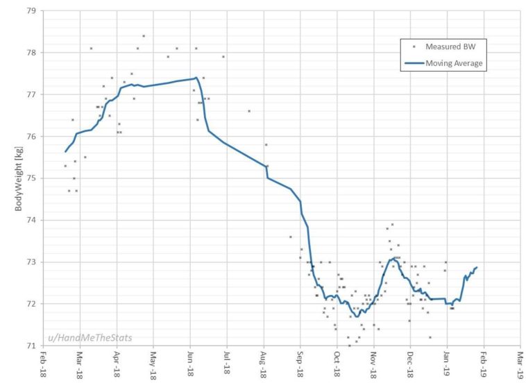 An excel visualization of my body weight measurements the last 11 months [OC]