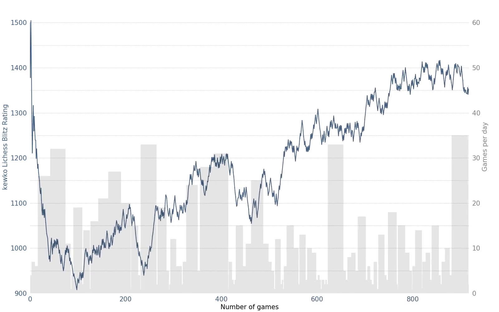 Data visualization : Animated graph of my chess rating on lichess.org [OC]
