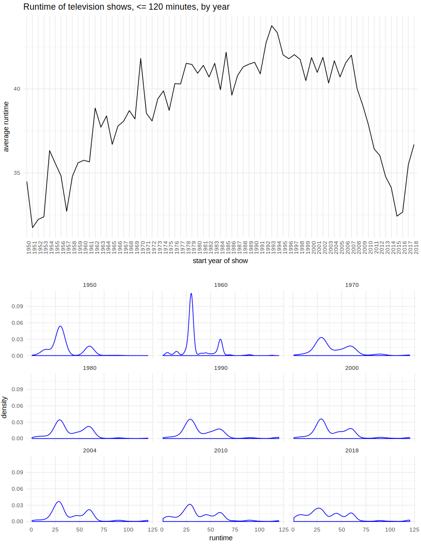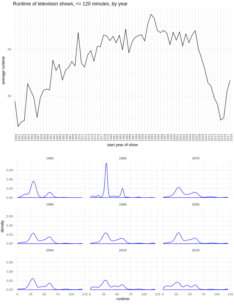 Data visualization : Are tv shows becoming longer or shorter? [OC]